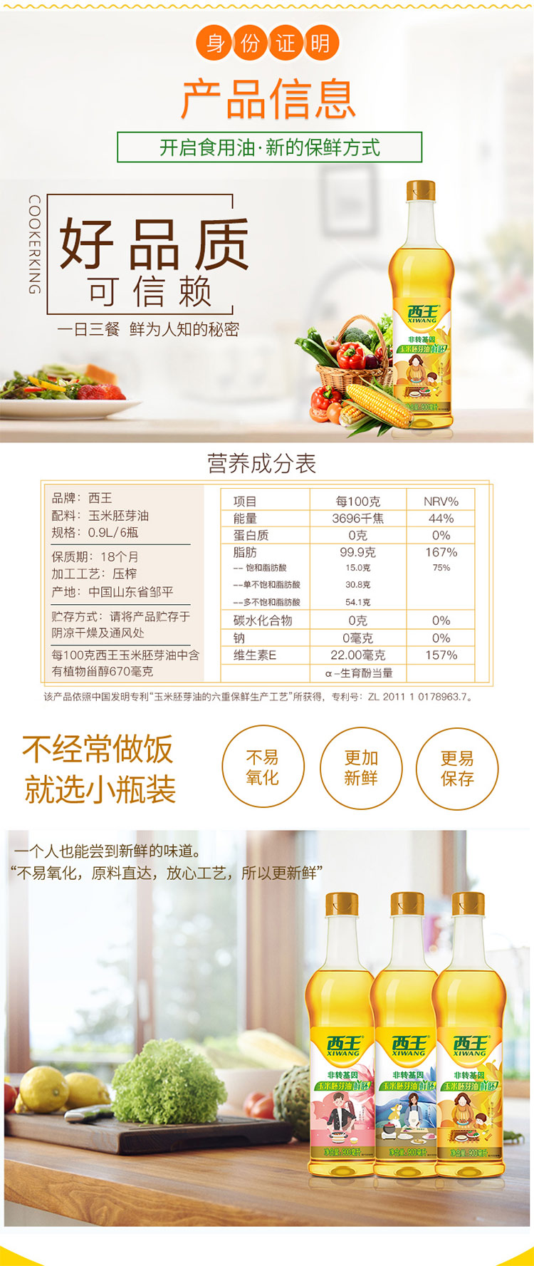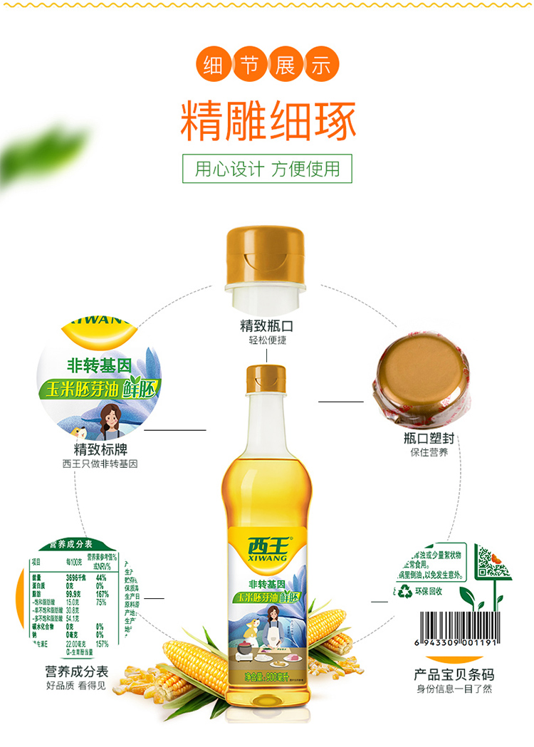 西王900ml鲜胚玉米胚芽油