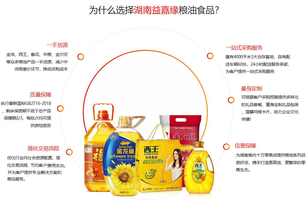 公司一直秉承客户至上、品质至上、服务至上的经营理念,可根据企事业单位员工福利、食堂餐饮、公司促销活动、会议接待、酒店餐饮等需求提供综合性服务方案,包括标准套餐和定制服务。并提供源头、正品、低价、仓库、速度、售后六重产品保障承诺。